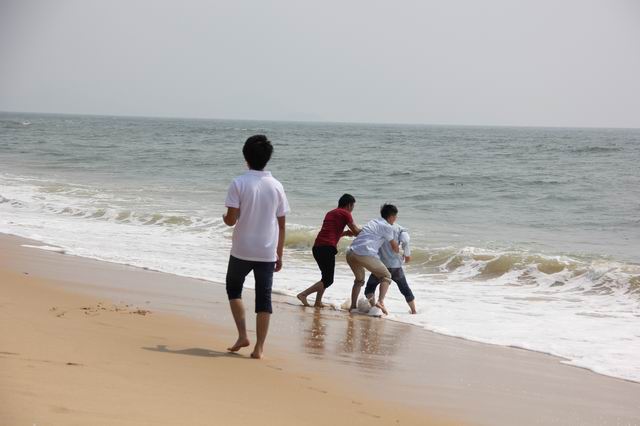 9月13日那一天,我們來(lái)到“大世界吉尼斯之”的十里銀灘漫步,海灘總長(zhǎng)9.5公里,海岸線長(zhǎng)達(dá)16.5公里。那里空氣清新,沙質(zhì)潔凈均勻,水質(zhì)清澈透明。我們領(lǐng)略著風(fēng)光毓秀,粗獷壯闊的沙灘;我們欣賞著一波又一波的巨浪,我們歡笑嬉戲著;我們擺著各種飛躍式的pose;我們集體出海捕魚(yú),體驗(yàn)疍家漁民生活,盡享出海樂(lè)趣。